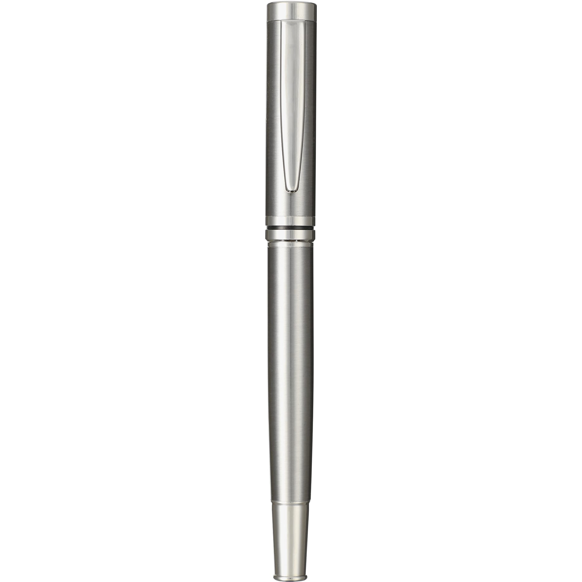 The Recycled Stainless Steel Rollerball Pen features a recycled stainless steel barrel with shiny chrome accents and 0.7mm tip. Smooth black ink with 400m of writing length and cap off design. Through a partnership with 1% For The Planet, one percent of sales of all EcoSmart® products are donated to environmental nonprofits.