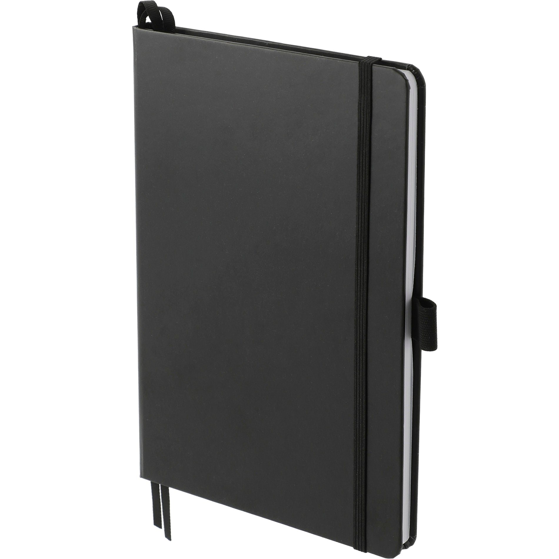 The "5.5" x 8.5" FSC Mix Bound JournalBook® features a FSC-certified paper hard cover with 80 sheets of white FSC-certified, soy-based ink lined paper. Includes color-matching elastic closure, pen loop and ribbon page marker . Through a partnership with 1% For The Planet, one percent of sales of all EcoSmart® products are donated to environmental nonprofits. Digital Inkjet not available on Silver color.