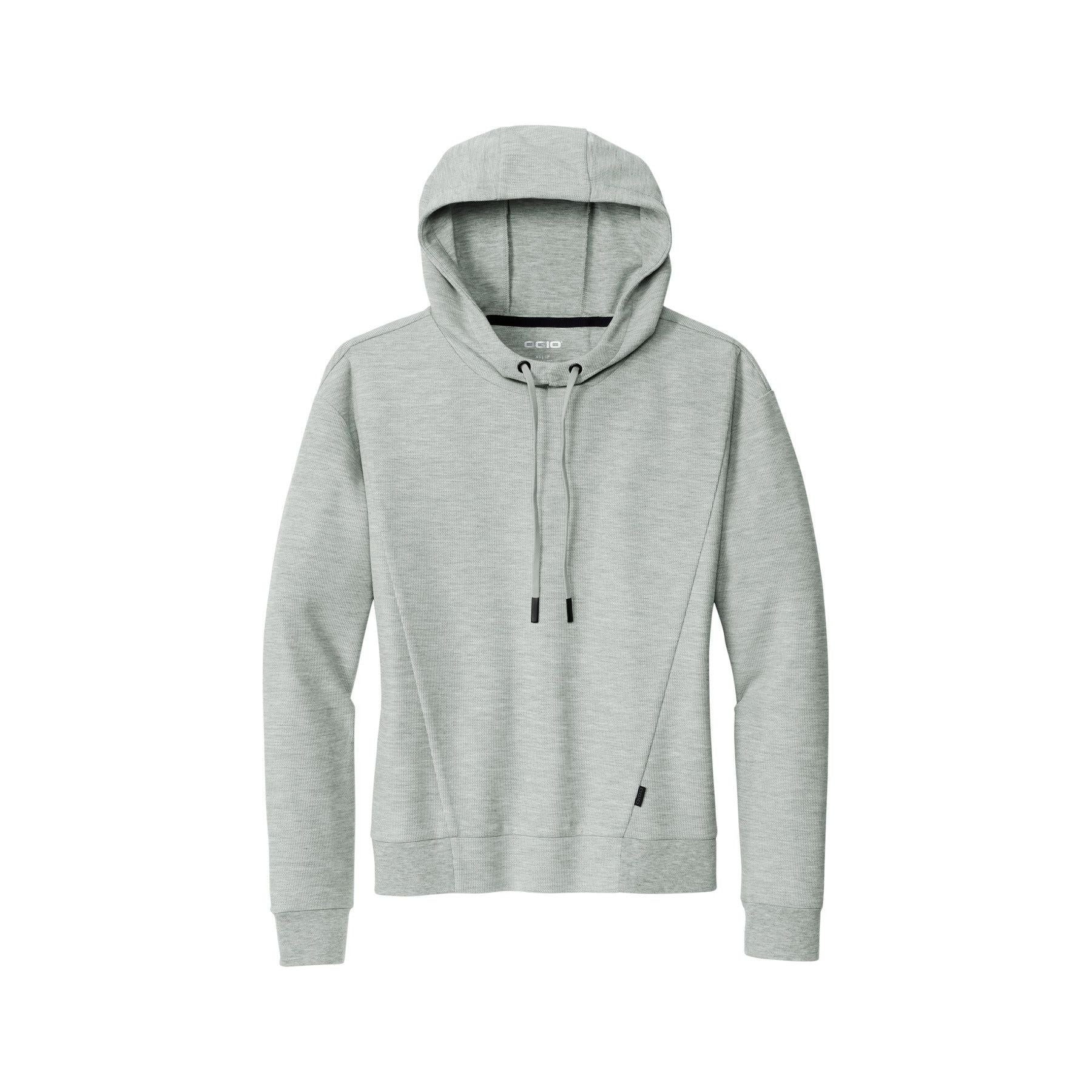 Revive your corporate or casual wardrobe with this comfortable, versatile double-knit layering essential that has modern angled lines and OGIO edge. 9-ounce, 67/30/3 poly/rayon/spandex double knit (Blacktop) 9-ounce, 65/32/3 poly/rayon/spandex double knit (Light Heather Grey) OGIO heat transfer label for tag-free comfort 3-panel hood Matte black eyelets with stretch drawcords and matte black dipped tips Rib knit cuffs Sits at high hip Black woven OGIO label on left hip Rib knit banded hem
