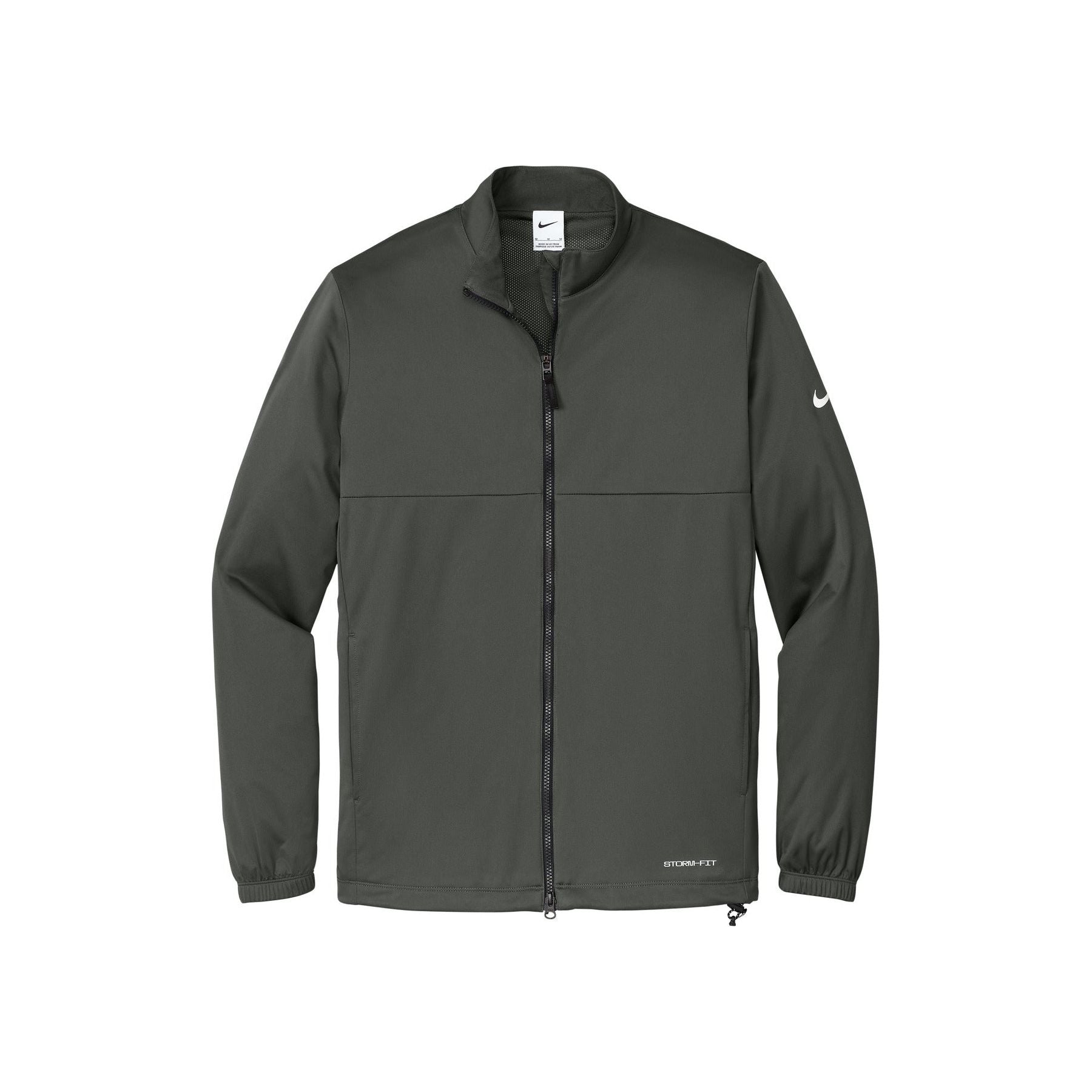 Designed with Storm-FIT technology to shield you from wind and rain, this sporty performance jacket has stretch for movement. Features a zip-through collar, side pockets and elastic cuffs. The contrast heat transfer Swoosh logo is on the left sleeve. A contrast heat transfer Storm-FIT logo is on the left hem. Made of 3.7-ounce, 100% polyester with a durable water-repellent (DWR) coating and mesh lining.